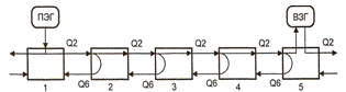 рис.1 показана цепь синхронизации из пяти мультиплексоров, первый из которых