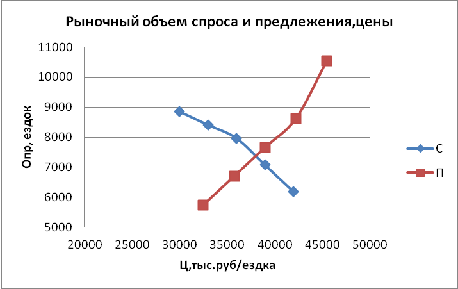 ЦР=37620 руб/езд., а годовой объём спроса и предложения - ОР=7340