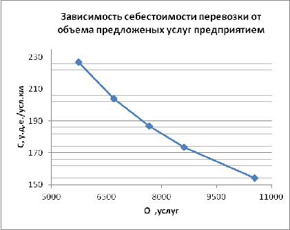 следует, что при увеличении объема оказываемых услуг себестоимость перевозки