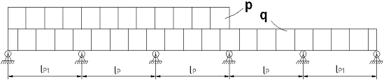 схема - п'ятипролітна. Навантаження - рівномірно розподілена, інтенсивність її
