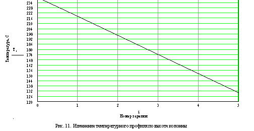 линолевой кислоты (для газовой фазы) по высоте колонны
