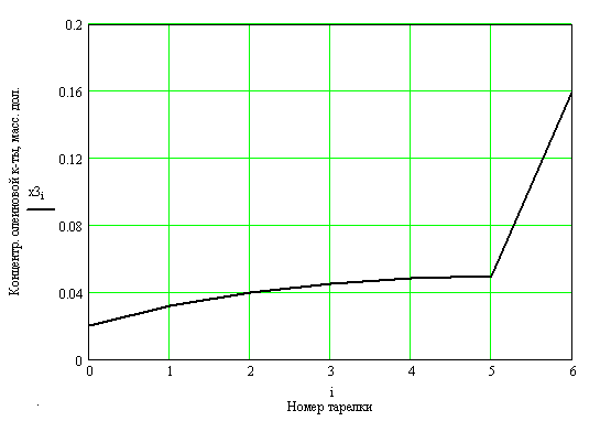 олеиновой кислоты (для жидкой фазы) по высоте колонны