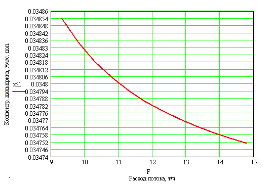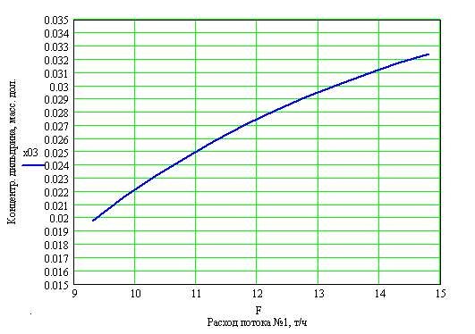дильдрина (для жидкой фазы) в дефлегматоре при различном расходе сырья