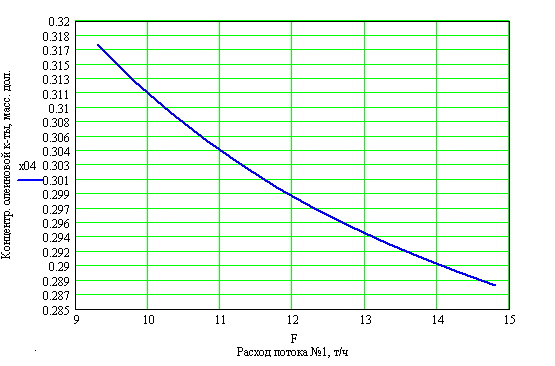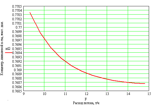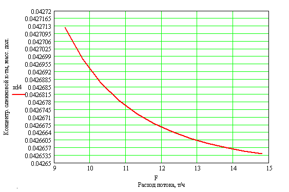 компонентов в кубе и дистилляте при изменении расхода питающее смеси. Для
