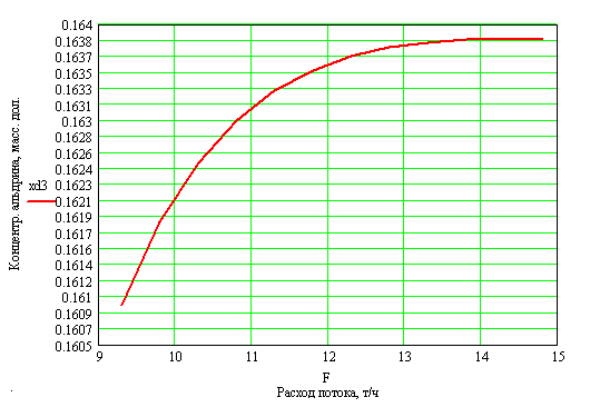 альдрина (для жидкой фазы) в дефлегматоре при различном расходе сырья