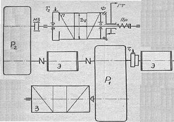 вращающийся на подъем от двигателя Э, увлекает за собой барабан П, который,