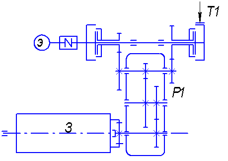 работе двигателя тормоз Т1 разомкнут. Вращение барабану сообщается через