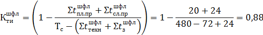 из-за его отказов в работе ( время на их устранение), мин, принять 24 мин;