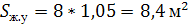Площадь определяется по общей площади на один умывальник (1,05 м2 для