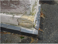разрушение бетона и облицовочной плитки цоколя.