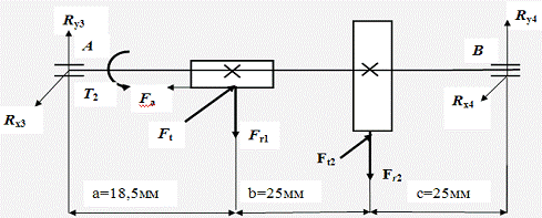 Промежуточный вал состоит из двух шпонок под