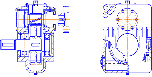 < hм < 0.25d2 (где m - модуль зацепления): при расположении шестерни ниже колеса hм= (0.1-0.5)d1, при этом hmin=0.2m. Рекомендуется, чтобы уровень масла