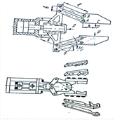 через ролики 3, а тяги, в свою очередь, перемещаются от захватного устройства