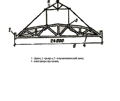укладывают по ригелям длиной 6 м. Плиты покрытия - по фермам сегментным (24 м).