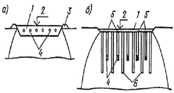 глубинным методам - пробивкой скважин (грунтовыми сваями), глубинными