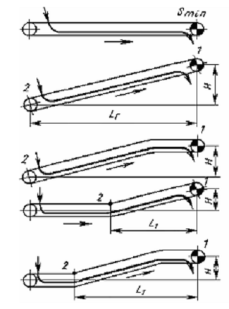 расположения натяжного устройства и привода на трассе конвейера. В общем случае