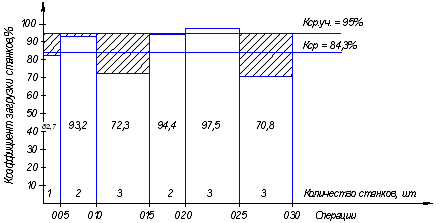коэффициента его загрузки. Построение графика загрузки оборудования