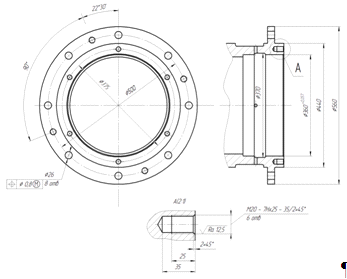 Закріплюється стакан за допомогою отворів у фланці деталі. Поверхні посадок