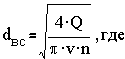 Диаметр напорных линий определяют по формуле: