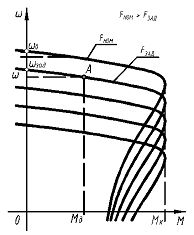 Семейство механических характеристик двигателя при управлении по закону U / f =