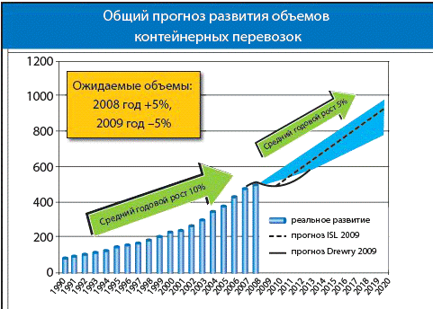 сравнении с 1996 г. морской контейнерный флот увеличился в два раза. В