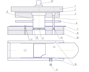 колонкам(15) и выставить зазоры между пуансонами(7,8) и матрицей(1).Прикрепить