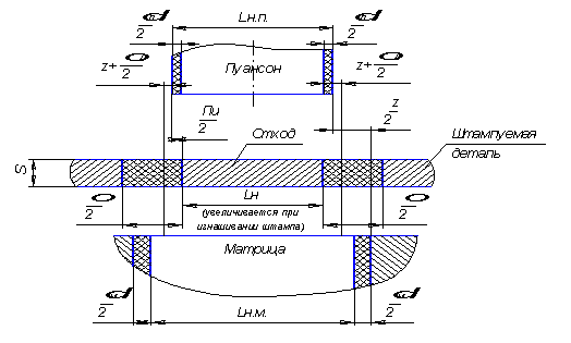 Расчёт исполнительных размеров рабочих деталей штампа и определение центра
