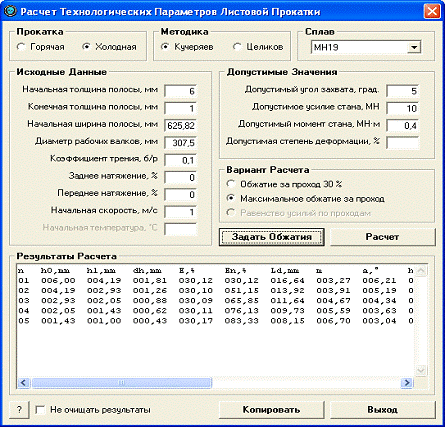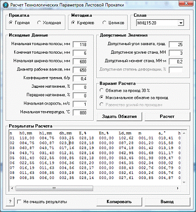 нашего процесса и произвели расчёт числа проходов, энергосиловых и