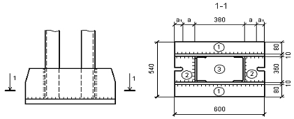 Определяем длину швов, крепящих стальные ребра к стенкам ветвей колонны.
