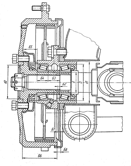 расположены сальники, для удержания смазки. Стакан задних колёс болтовым