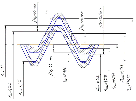 Определяем наибольший и наименьший зазоры по среднему диаметру резьбы