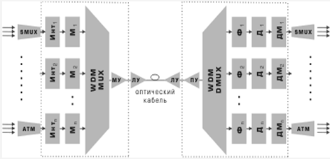 м), что называется плотным волновым мультиплексированием DWDM (Dense WDM).