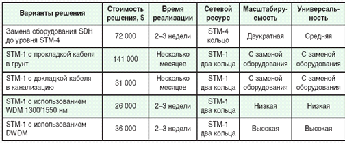 дополнительного введения WDM оборудования как самый оптимальный вариант.