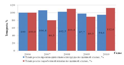 Анализ темпов роста производительности труда и средней заработной платы