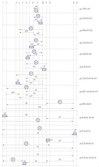 последовательно выявим и построим 13 размерных цепей, замыкающими звеньями для