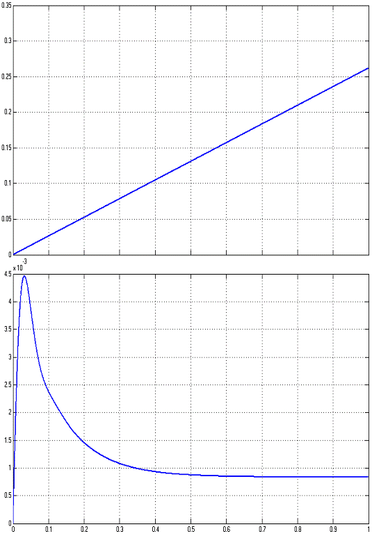 ошибка при реакции на линейно-нарастающий сигнал равна 0,0008 радиан, ошибка
