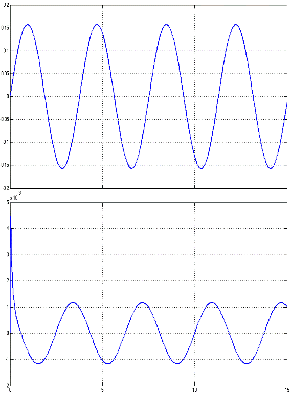 Величина установившейся ошибки = 0,0008 рад, что ниже, чем допустимая ошибка в