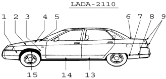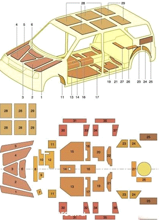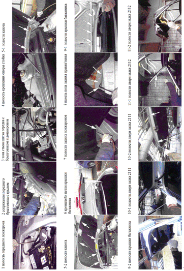 полости автомобиля в соответствии со схемой. На схемах показаны места нанесения