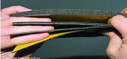 нанесен клеящий слой, закрытый защитной пленкой. Защитную пленку снимаем