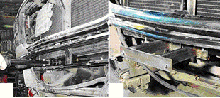 углам корки бампера. Кронштейны старого бампера открутили от лонжеронов -