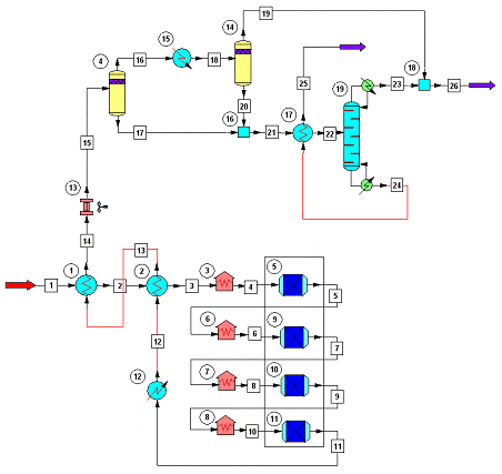 и затем поступает в реактор с аксиальным вводом (5, 9, 10, 11). Одновременно