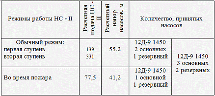 Рассчитать режим работы НС-2 во время пожара