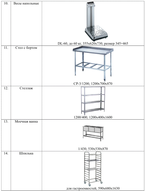 специализированному импортному оборудованию, необходимому для приготовления