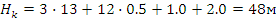 Нк = (31-1) 0.5 + 1.0+2,0= 18 м