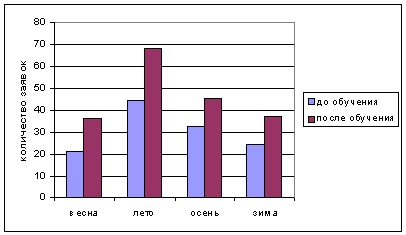 В данном случае прослеживается рост объемов продаж менеджеров, прошедших