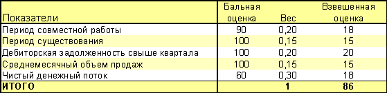 баллов. Затем каждому показателю присваиваются веса значимости и выводится