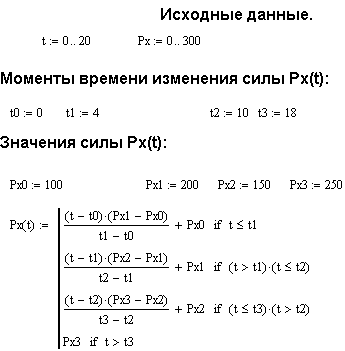математической модели колебательного движения груза по заданным силам в среде MathCAD.использует