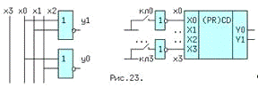 2n- входовим схемам АБО(И) для кожного розряду, або виконувати вихідні