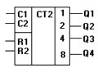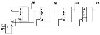 R2 служать для скидання лічильника, яку відбудеться, якщо R1 = R2 = 1.