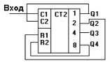 з'єднань Q1 з ІЗ2 можна одержати послідовний лічильник з Ксч=2Ч8=16. Входь R1 і